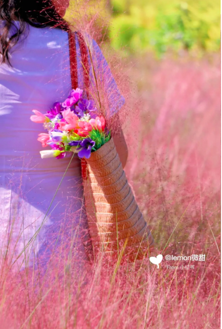 粉黛乱子草花海拍照小技巧
