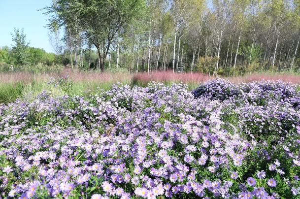 花海中还点缀着一小片紫菀花