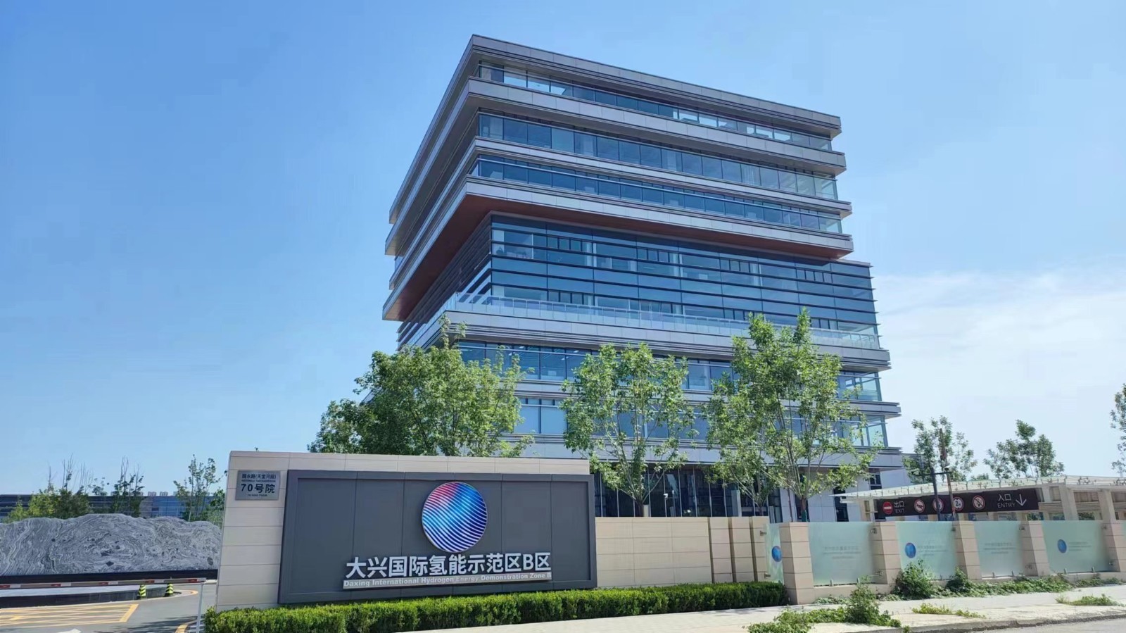 大兴国际氢能示范区成立于2020年,位于北京市大兴区黄村工业区,分为南、北两个区(以下简称南区、北区)。于2021年竣工的北区着力打造涵盖交流展示、研发办公、测试车间、生产厂房、孵化器、加氢站、商业配套于一体的“氢能综合创新生态圈”,现已建成涵盖氢能研发、利用、制造、展示、交流等功能为一体的国际氢能产业集聚区。其中海珀尔加氢站,占地6000余平方米,日加氢量可达4.8吨,是目前亚洲日加氢量最大的加氢站,为燃料电池汽车大规模推广应用提供了保障。