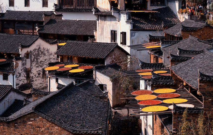早餐后车赴中国最美乡村婺源,游览婺源标志性景观【篁岭】(含门票120元,赠送上下索道120元)。篁岭属典型山居村落,经典的徽派建筑,是一座距今近六百历史的徽州古村。由于篁岭地无三尺平,村庄平地少,屋顶架晒成了主要晾晒农作物的主要场地,形成了独具特色的“晒秋”场景。