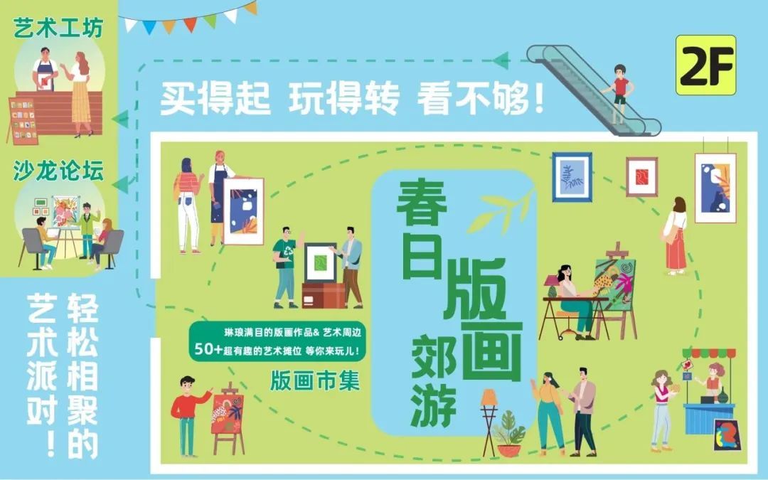 还有版画市集,50+ 艺术摊位汇聚青年版画创作者,风格多元、价格亲民,把艺术带回家!艺术工坊带给你沉浸式互动体验。亲手刻制、调墨、印刷,体验版画制作全过程,带走独一无二的艺术作品。更有艺术沙龙,和大师面对面!