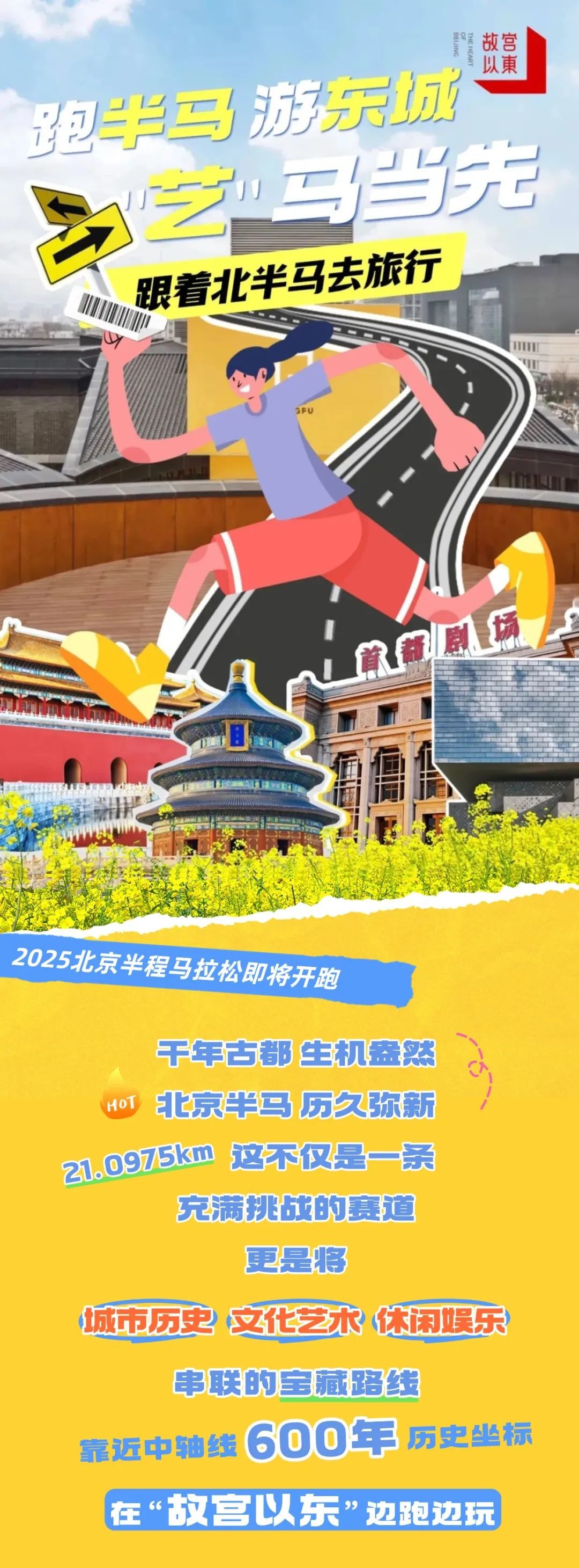 北京半程马拉松将于4月20日正式举行,比赛起点天安门广场,终点国家体育场。跑过870余岁的古都北京,跑过秩序井然的中轴线,“故宫以东”在此推出了【跑半马 游东城】5条线路包含文化艺术、精品美宿、历史古建等方方面面,带你一起跟着赛事去旅行。