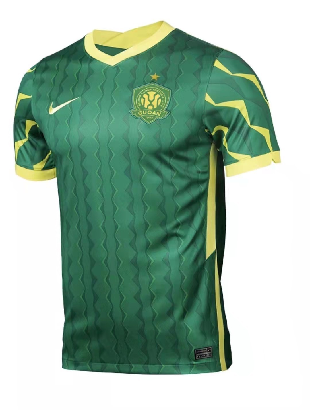 2002年9月11日,北京国安足球俱乐部再次发布新版队徽,对此前的队徽做了颠覆性改变。新队徽采用绿色为主、黄色为辅的国安俱乐部主色调,着力突出国际感和现代感,不但与中信集团的标识做了明显的区分,也更符合职业足球俱乐部的队徽风格。当然,这版队徽的中心元素仍是当时出资方中信的标识,这不但是为了反映了俱乐部的背景,同时也有助于公众的延伸识别。从那时起,它陪伴北京国安走过了不平凡的20年征程,已经深深烙印在球迷们的心中。