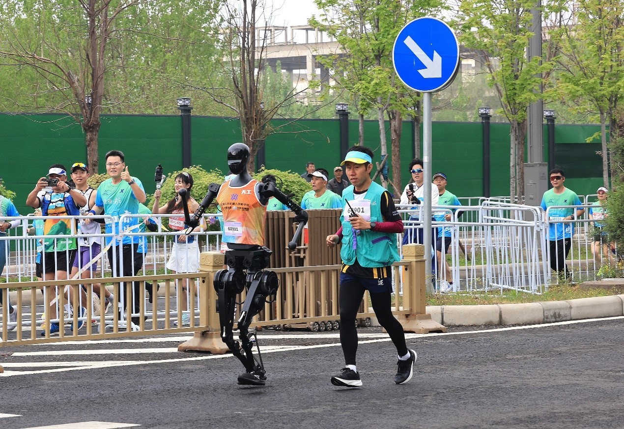 以人形本体为介,以人工智能为脑,与人类同步出发、共跑半马赛道,同享一片欢腾……