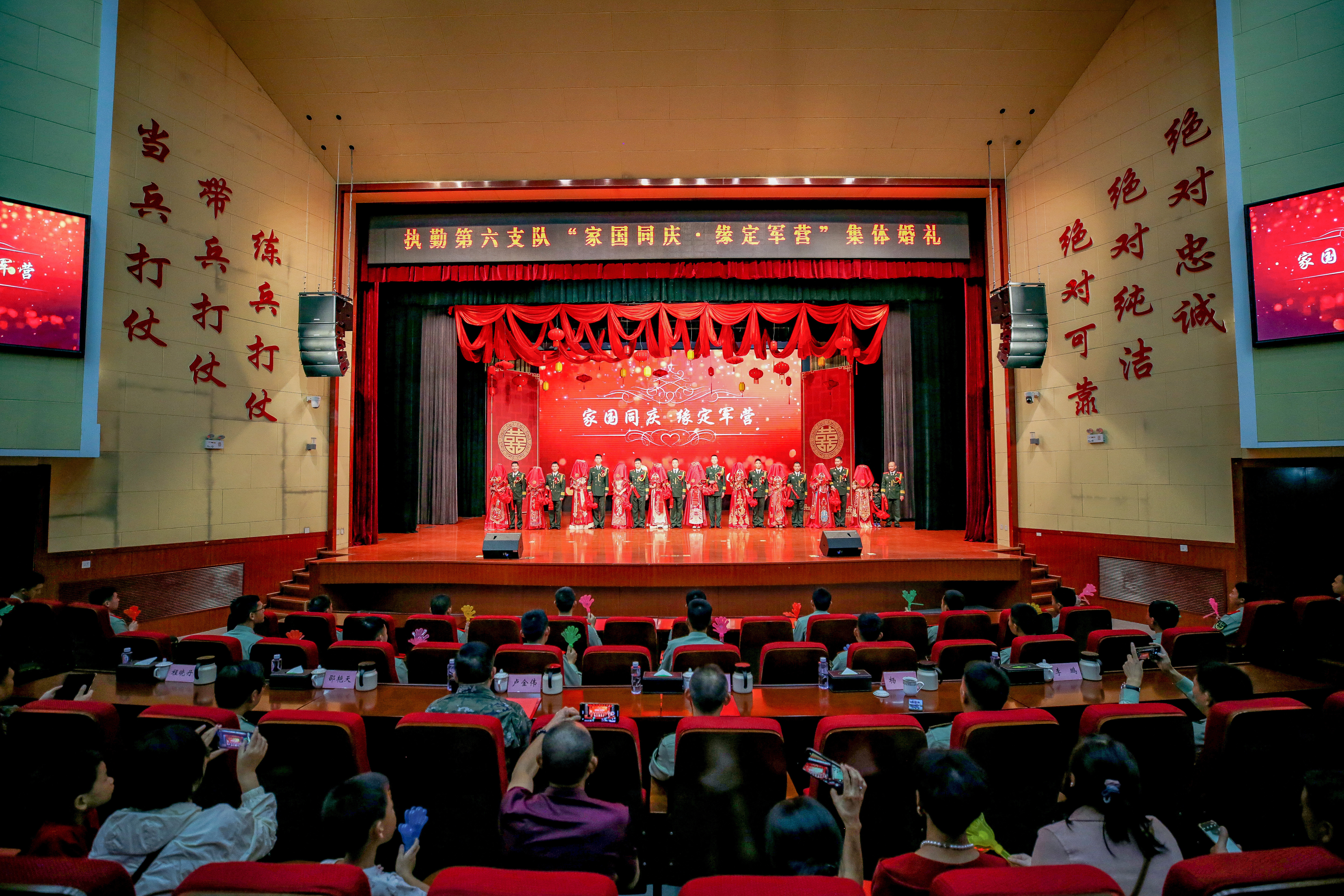 当举国欢庆的礼炮响彻山河,当军营的彩旗拂过战旗的边角,一场特别的仪式在武警北京总队执勤第六支队营区悄然升温。十一“双假”叠加,祖国76周年华诞,10对新人卸下日常的忙碌,一身戎装映着洁白嫁衣,在战友的掌声与亲属的泪光中携手走来。没有奢华排场,却有战旗为媒、钢枪为证;不谈浪漫噱头,却把“守护家国”的誓言,融进“守护彼此”的承诺里。