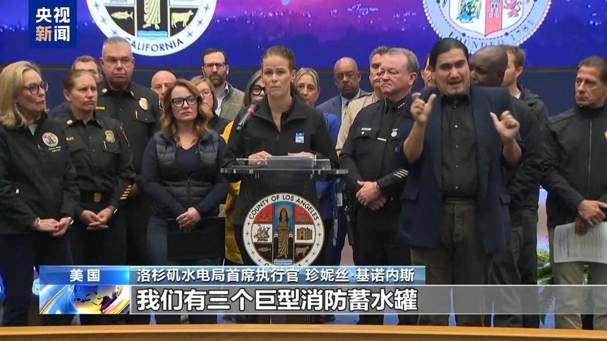 洛杉矶水电局首席执行官珍妮丝·基诺内斯质问:“在帕利塞德发生了什么?我们有三个巨型消防蓄水罐,每个存储100万加仑(约合379万升)水,然而,7日16时45分左右,第一个蓄水罐用完;20时30分,第二个蓄水罐耗尽;8日凌晨3时,第三个也用完了。”