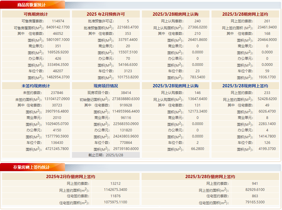 根据北京市住房和城乡建设委员会数据:3月28日,北京新房住宅网签217套,网签面积约26,491.37㎡;二手房住宅网签863套,网签面积约79165.53㎡。