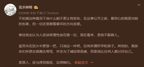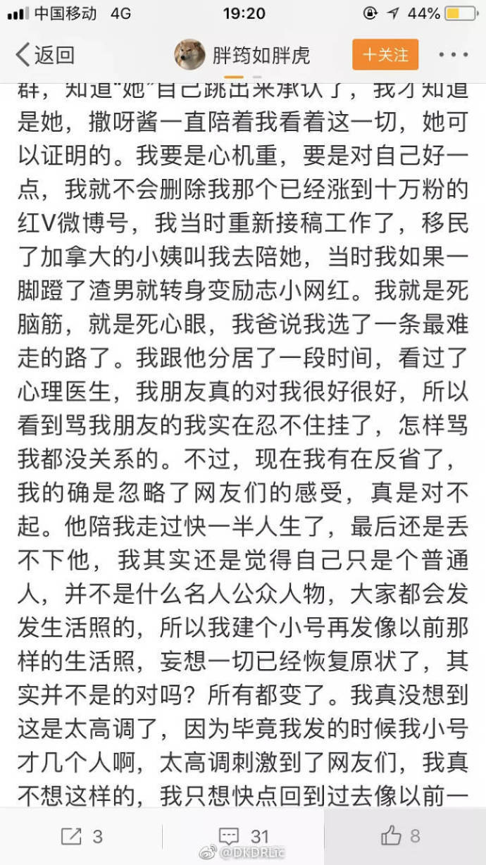 简单翻译一下:这事儿我也不想发生,跟小三没发生关系,不存在怀孕说。只有我一个人挣钱养家,夫妻没有共同话题,恰巧遇到心动的人,所以出轨了。
