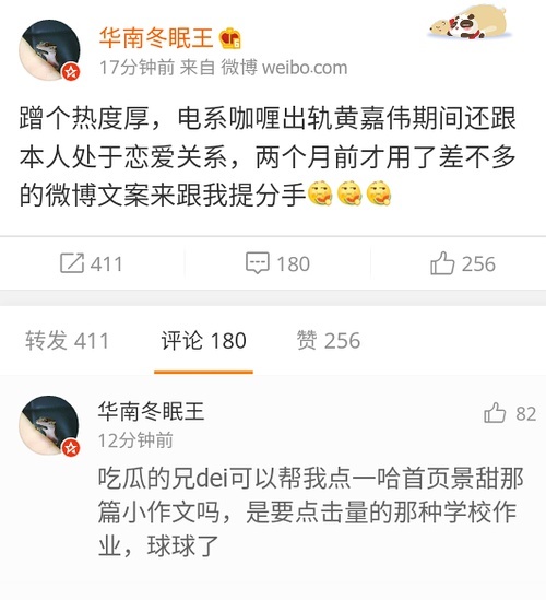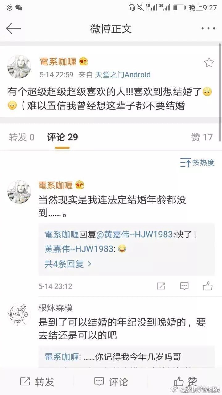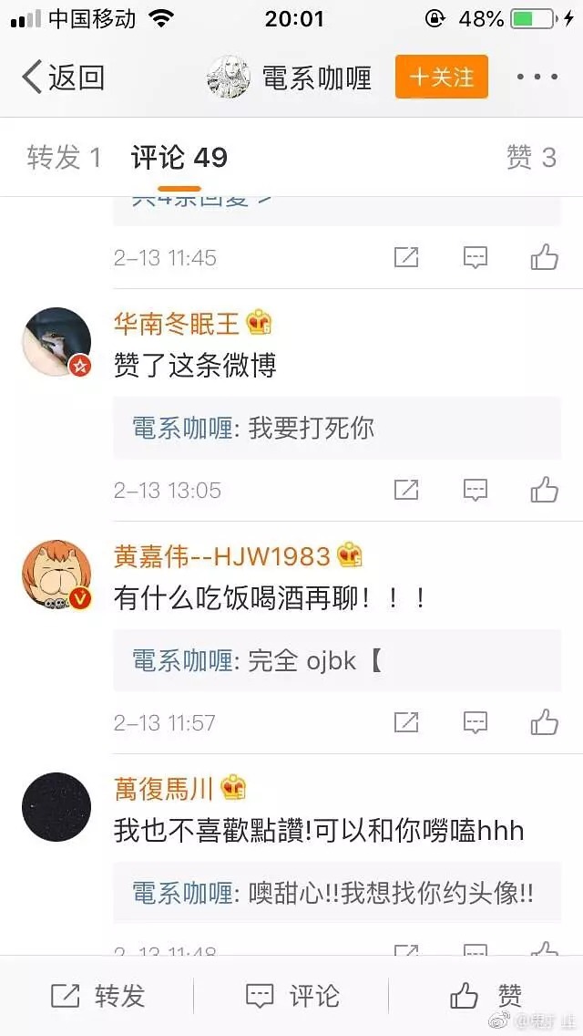 点进去微博发现,黄嘉伟跟小三早就开始甜蜜互动了。