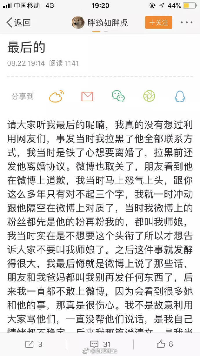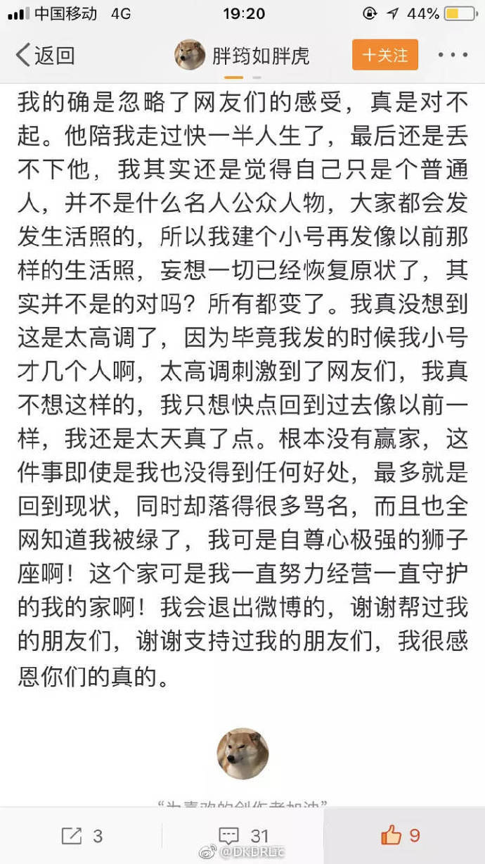 又发微博证实没离婚,两人好着呢,开始让网友不要指责黄嘉伟了。