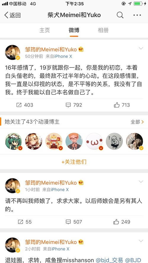 再过了两个月,邹筠在小号微博说:以后你只能画给我。