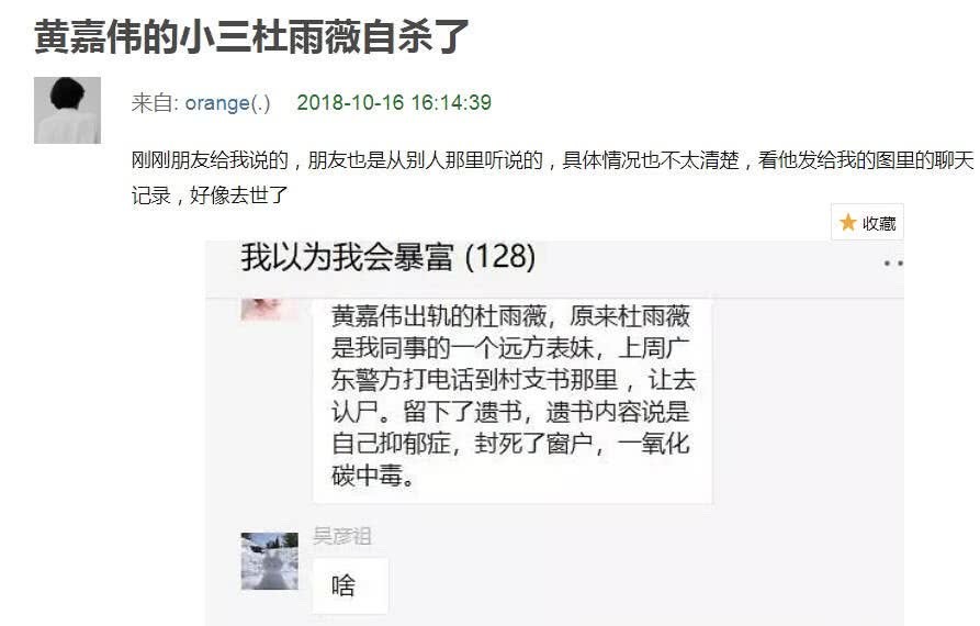 这时,一个网友跳出来说,黄嘉伟的小三叫杜雨微,曾是GNZ48练习生。之所以这么肯定因为他就是杜雨微的前任,被黄嘉伟绿了的人。