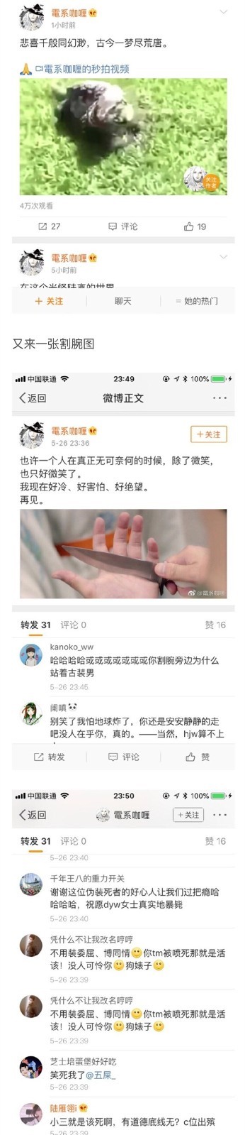 网友不放过她,还冷言冷语嘲讽,说她是戏精假自杀。