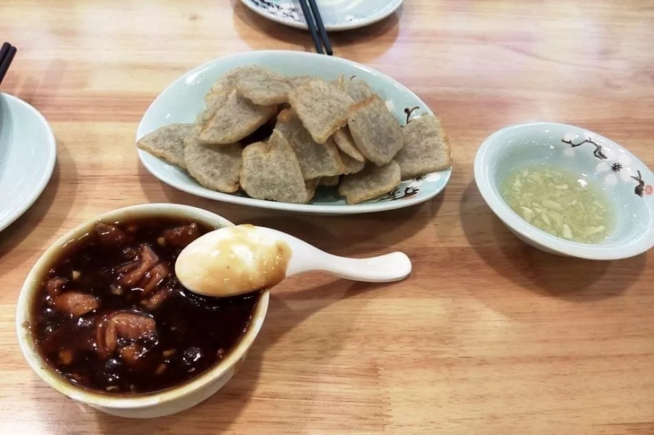 此后经历了战乱,灌肠更随之简化,把肠子和红曲也省了,只用香料水调和的淀粉面蒸熟成坨,再切片煎。这就是我们今天看到的灌肠——深灰偶尔泛白,既无荤腥也无肠衣。