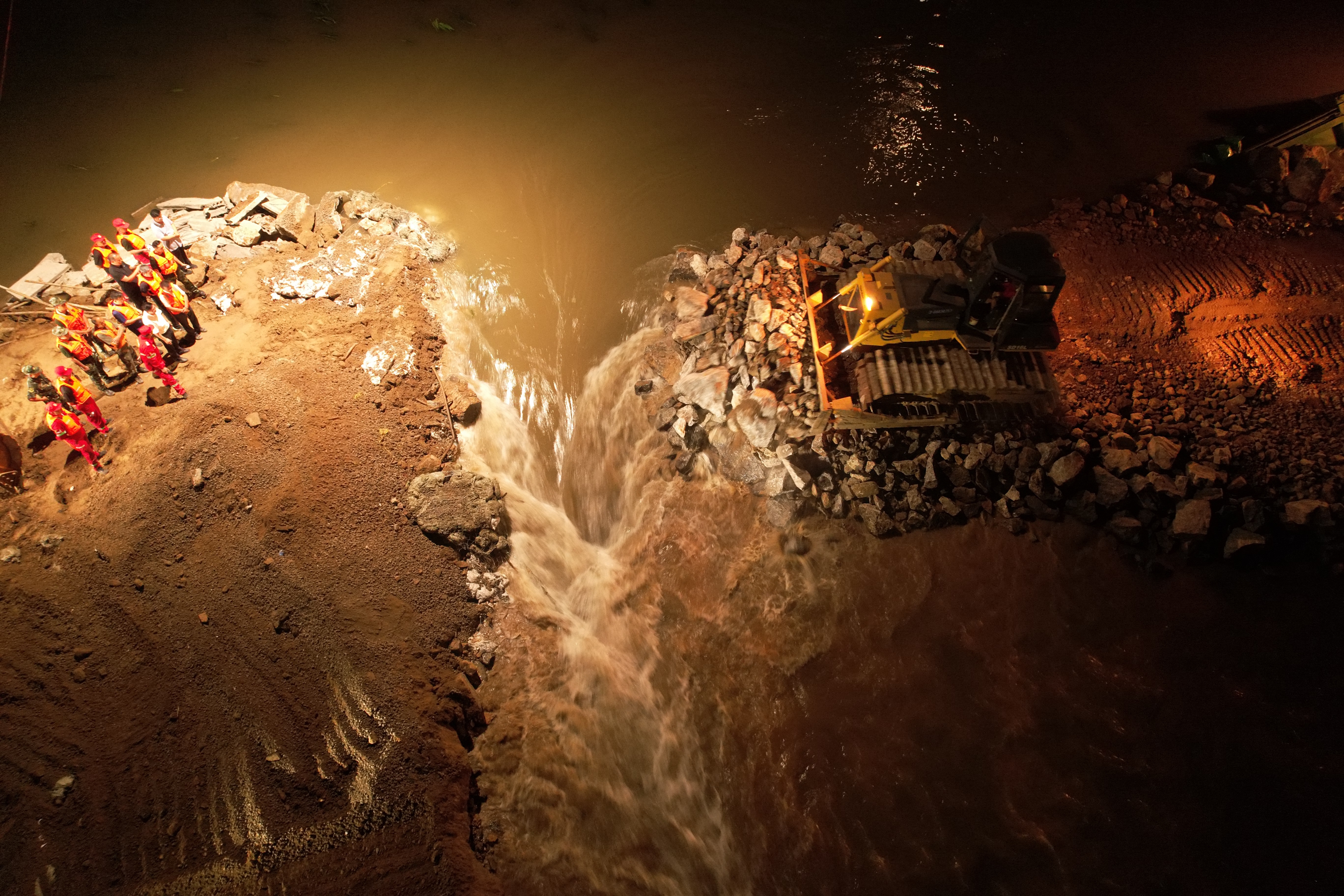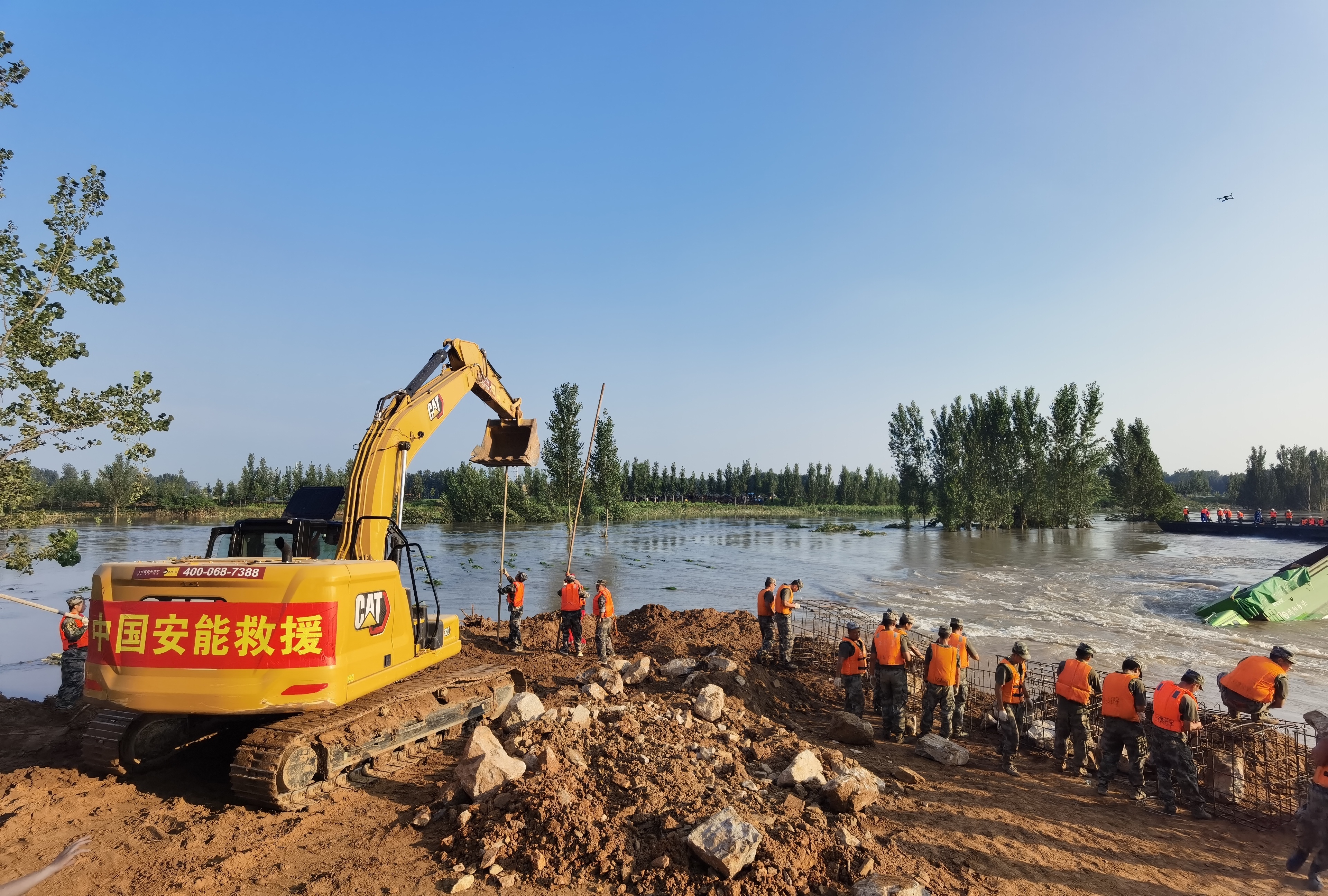 险情就是命令!中国安能紧急调集169名工程救援人员、40台套大型装备紧急赶赴现场,专家组迅速制定了“堤面拓宽、裹头加固、立堵合龙、防渗闭气”的处置战法。