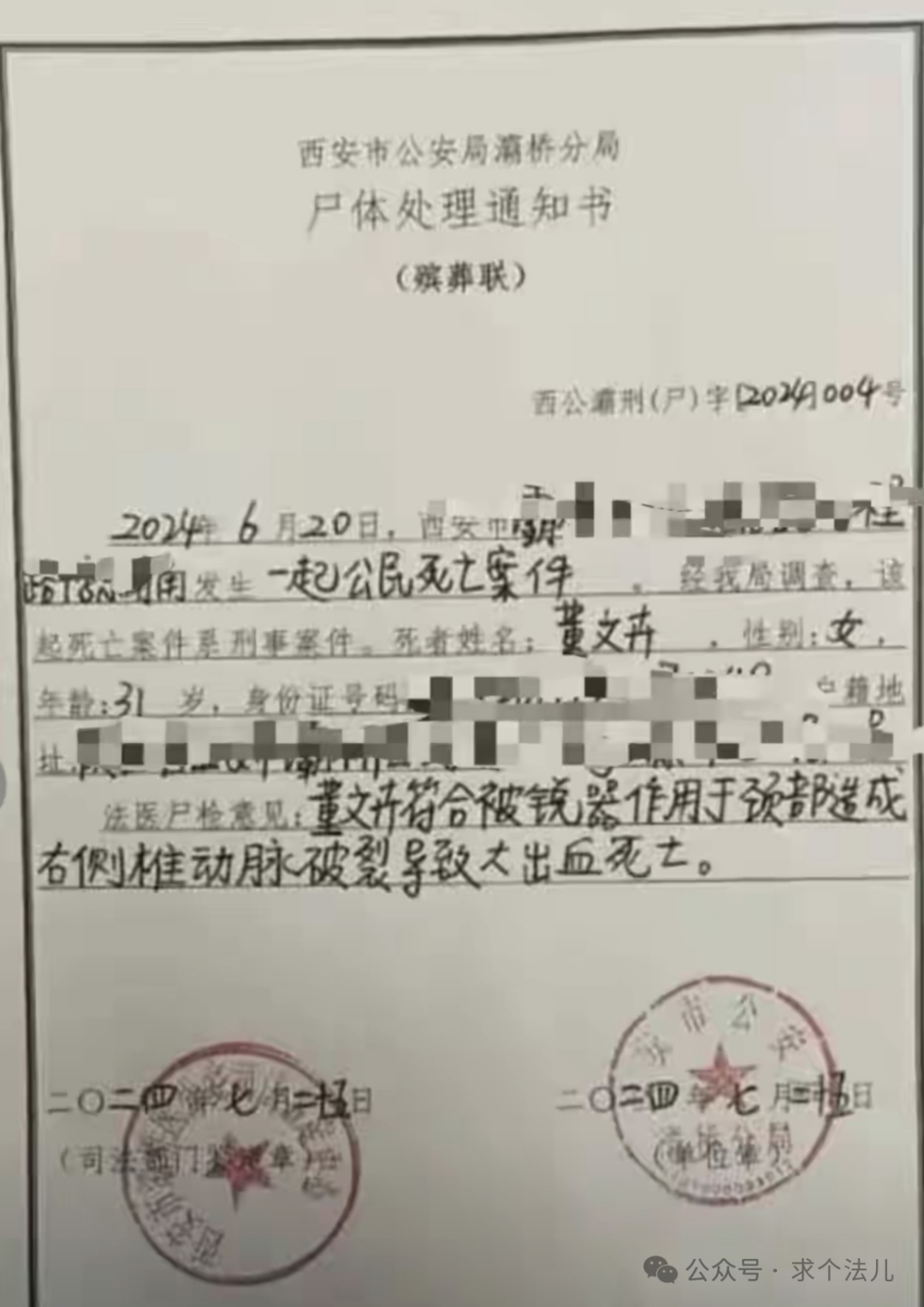 截至目前,该案已进入司法程序,将于今天也就是11月3日由西安中级人民法院开庭审理。在案件侦查及审查起诉阶段,董某某年迈的父亲多次表达诉求,面对可能的民事赔偿,他坚定表示 “不要赔偿,只希望判凶手死刑”,以此告慰女儿的在天之灵。