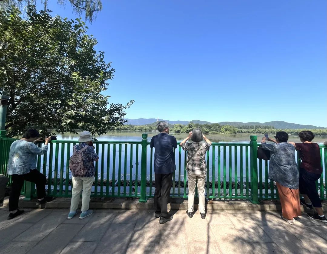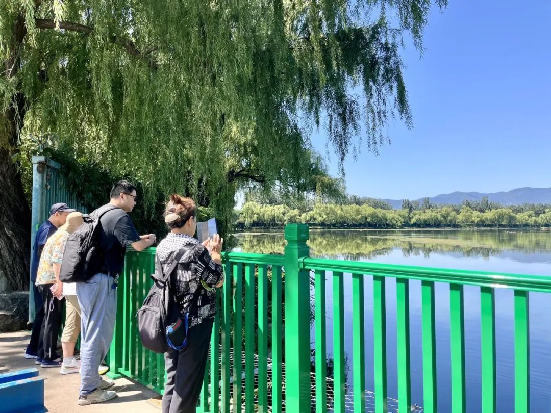 8月25日10时许,从颐和园西门进入园区,向东北方向步行400多米,便在桥区看见网友拍摄到的团城湖低矮护栏。不少市民围在湖边观景,十分热闹。