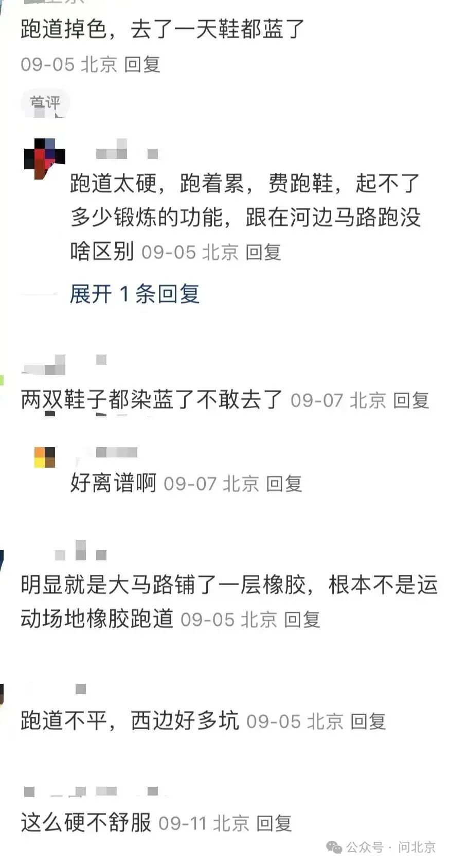 “问北京”记者在跑道上也发现,小部分点位的确存在杨女士所说的“棱”,踩上去时可以感受到跑道有轻微高低不平的起伏。在社交媒体平台,也有许多网友对通州体育场跑道的体验感展开讨论。一些网友认为,新建跑道掉色属于正常现象,塑胶跑道较大的颗粒感,在长时间使用后可以被磨平,大家需要给跑道一点时间。也有很多网友表示,投资如此之高的重点工程,跑道掉色、跑感较差,让人失望。