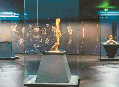 复原的三星堆鸟足曲身顶尊神像。新华社发 鲁海子摄