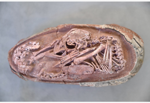 据介绍,这个恐龙胚胎保存状态相当原始,没有受到化石化作用的太多干扰,清晰展现了其存活时的状态。该个体从头到尾总长度估计为27厘米,蜷曲在一个长度为17厘米长形蛋化石中。