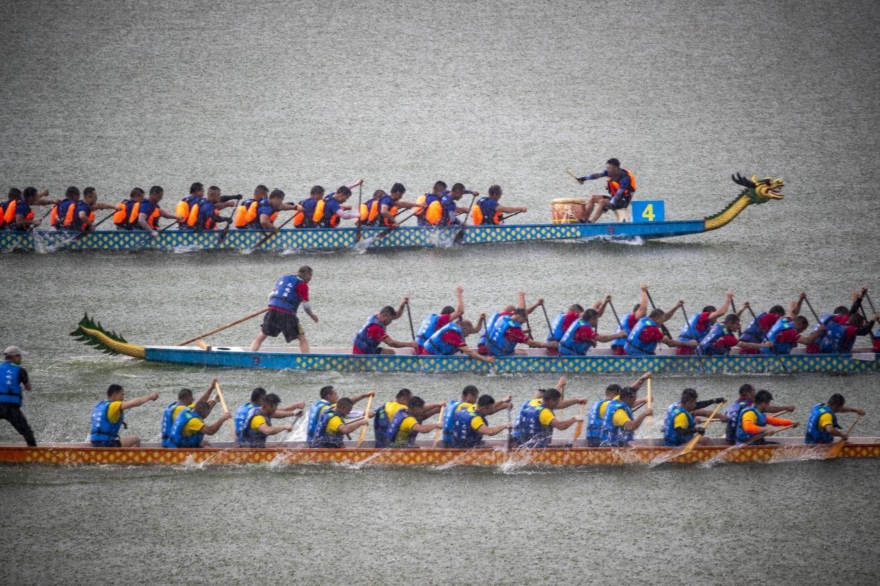 2022年6月3日,“五月五,是端午”。在屈原故里、龙舟竞渡的发祥地湖北省宜昌市秭归县,龙舟队雷鸣击鼓、飞桨逐浪,上演一场“水上速度与激情”。
