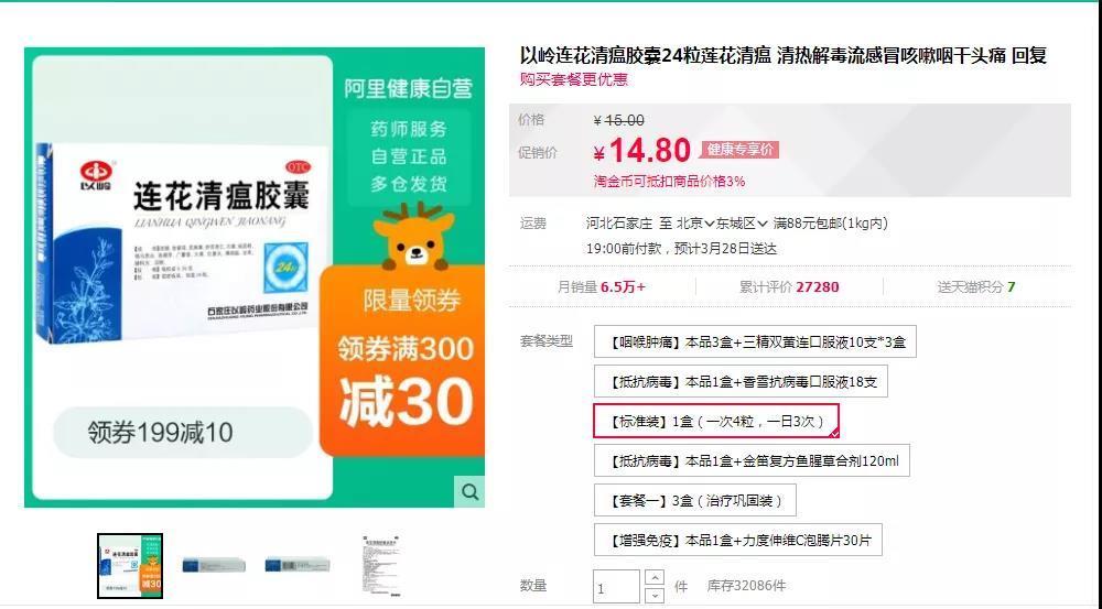 时间财经查询电商平台发现,以岭药业生产的连花清瘟胶囊价格并不贵,每盒售价仅为14.8元,且供货充足。