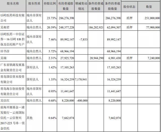 以岭药业2019年半年报显示,以岭医药科技有限公司(由河北以岭医药集团有限公司更名)持有23.73%股份为公司控股股东,吴相君持有20.59%股份,吴瑞持有2.31%股份,吴以红持有0.68%股份。其中,以岭医药科技有限公司是1992年经批准成立,注册资本6263.4万元,吴以岭出资6263.4万元,股权比例100%,为实际控制人。