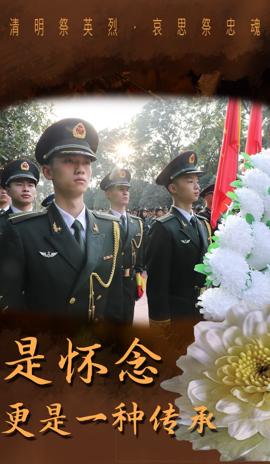 青山有幸埋忠骨,烈士墓前抚英魂。清明时节,全军各部队官兵在烈士陵园隆重举行了祭扫仪式。通过多种形式,祭奠缅怀革命先烈,感悟先辈荣光,传承先辈遗志,凝聚起建功军营的磅礴力量。