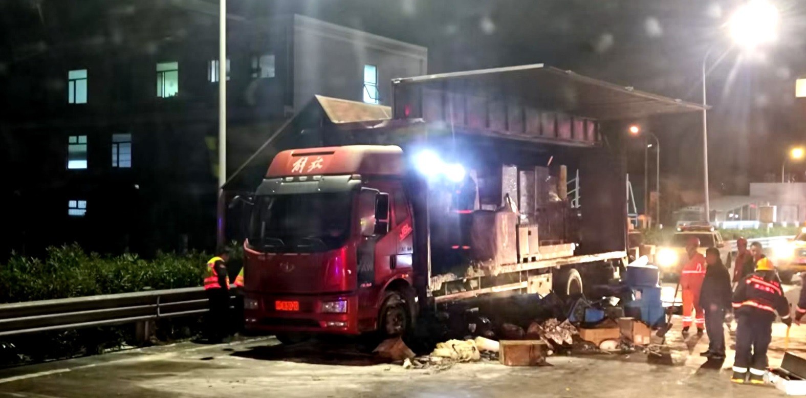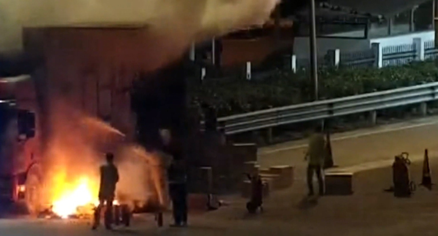 货车突发火情 高速收费员“一气呵成”教科书式极速处置