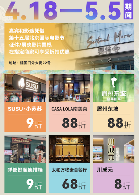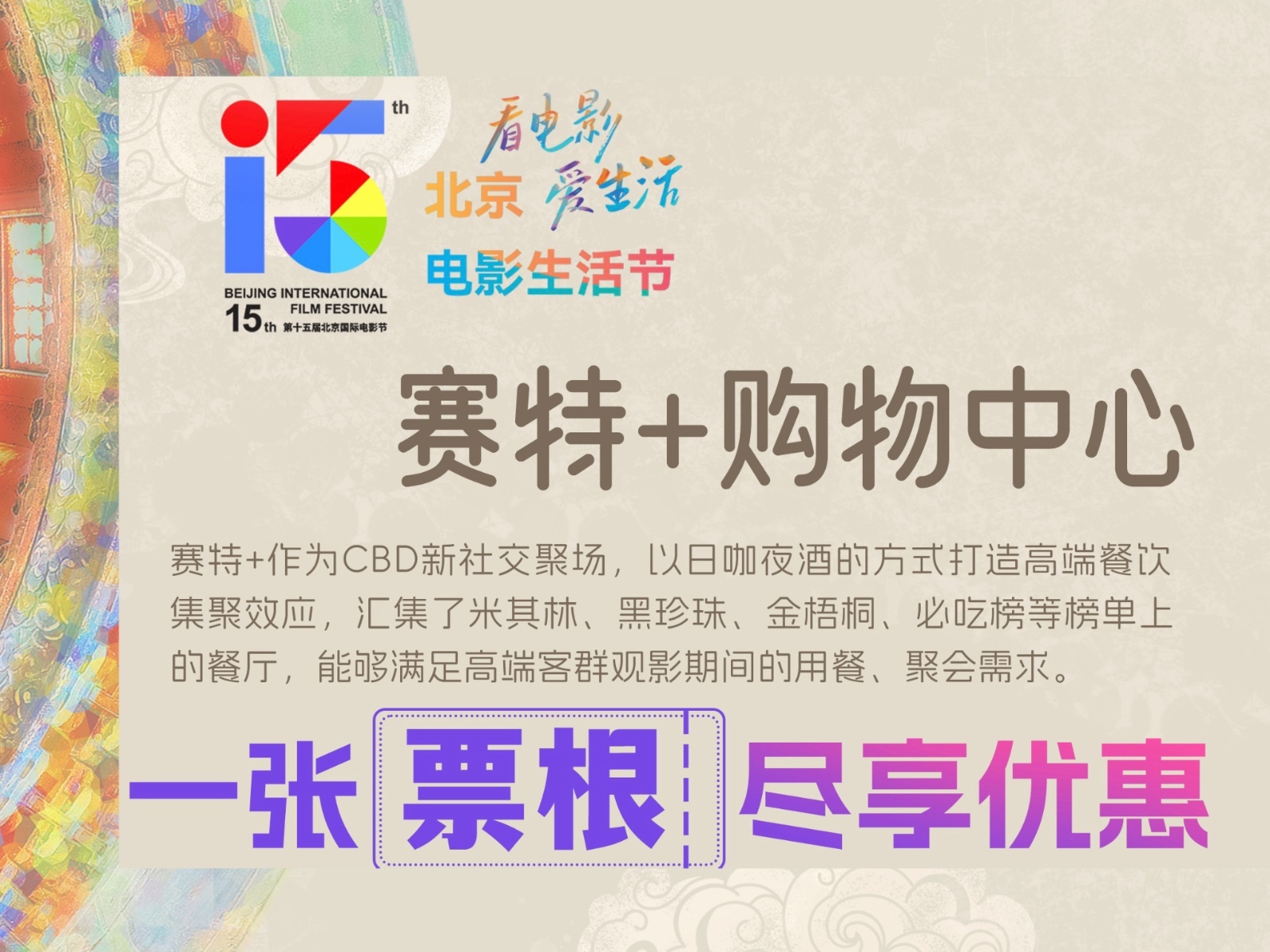 留票根,薅羊毛!赛特+购物中心福利折扣一图get!4月18日—5月5日,全市30余家商场600家商户推出电影节专属折扣!凭“北影节”票根,享打折优惠!吃喝玩乐全面网罗!速来加入这场“全城电影嘉年华”!
