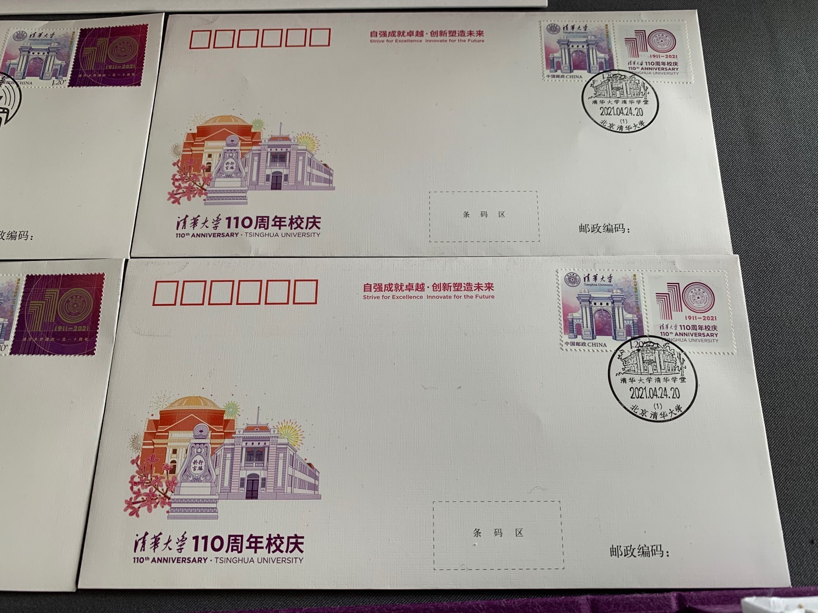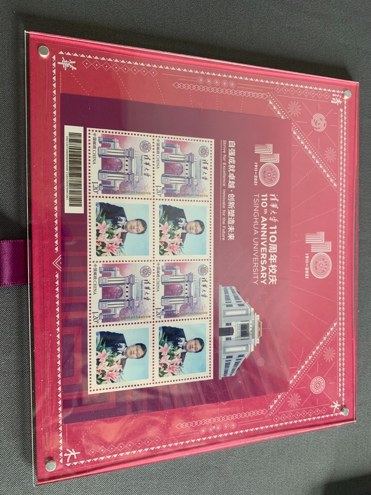 中国邮政为纪念清华大学110年校庆,特意发行了《清华大学》个性化服务专用邮票一套1枚,邮票面值为1.20元。