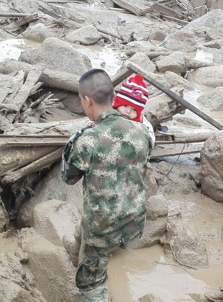 哥伦比亚泥石流救援现场画面(图片来源:视觉中国)哥伦比亚政府目前已启动了国家灾害管理系统,出动军队、警察等立即展开救援。