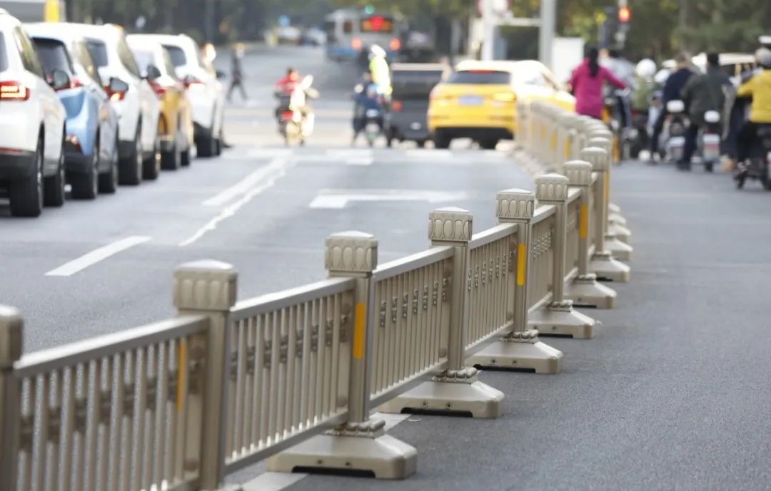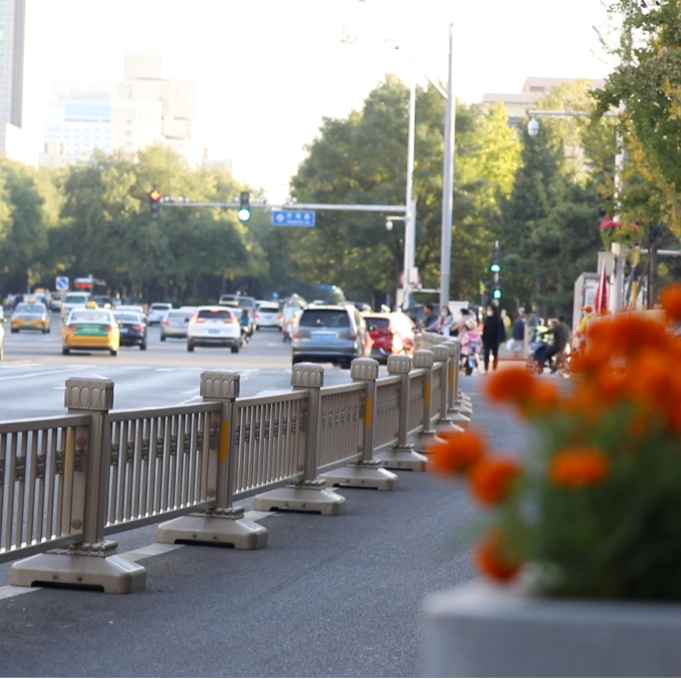此次优化提升的护栏,西起玉泉路东至新兴桥,涉及复兴路(玉泉路-新兴桥)及沿线交叉路口相关道路(西四环辅路、万寿路)。总长度为17132米,其中,中心护栏4252米、慢行道护栏2787米、便道护栏9077米、绿化护栏353米和移动护栏663米。
