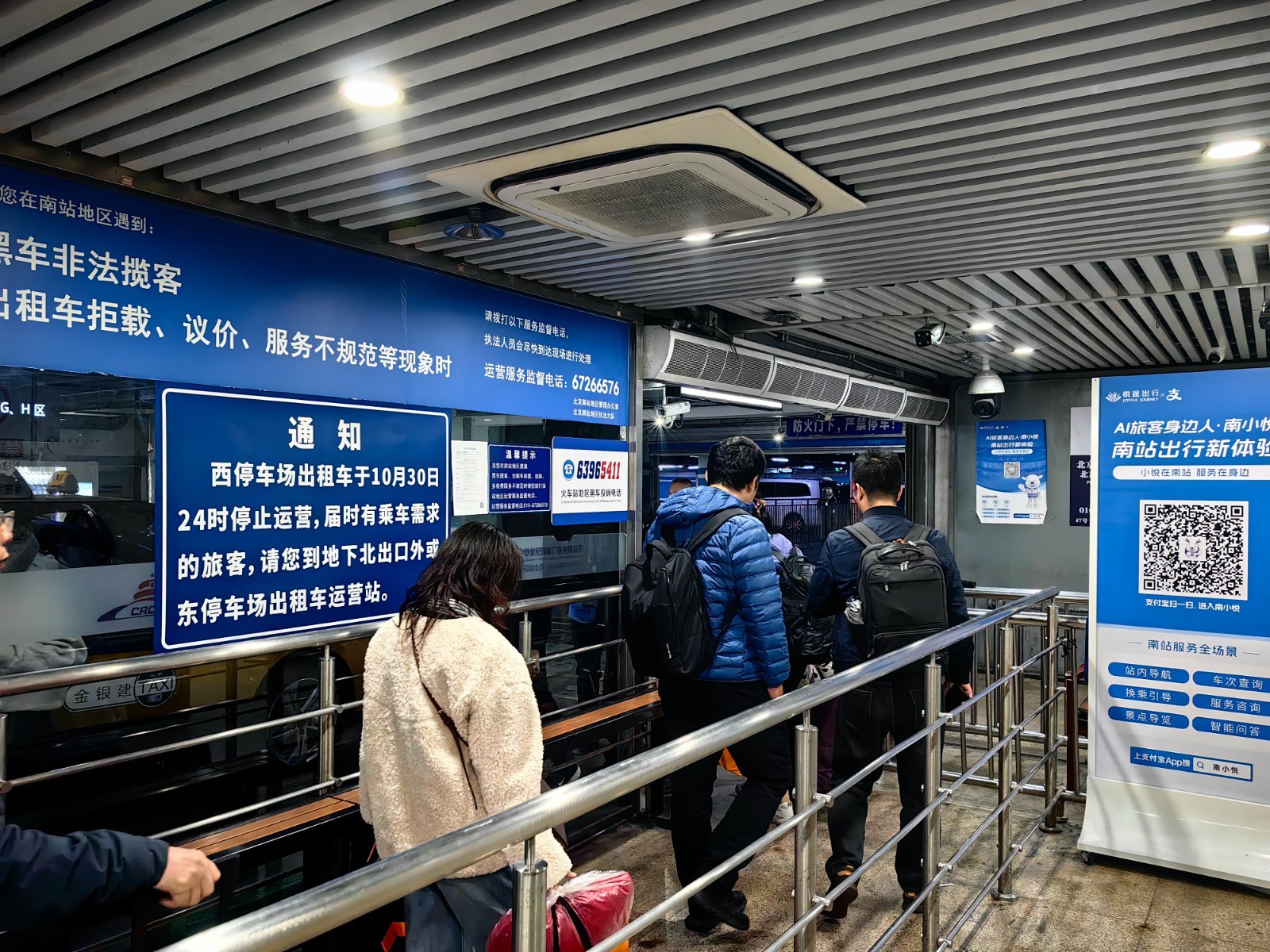 记者从市重点站区管委会获悉,为进一步优化地下停车场服务功能,提升旅客整体出行体验,自2025年10月31日起,北京南站西地下停车场出租车调度站将正式停用,旅客可前往东地下停车场出租车调度站,或选择北枢纽出租车调度站乘车,这两处调度站均能方便快捷地满足您的出行需求。