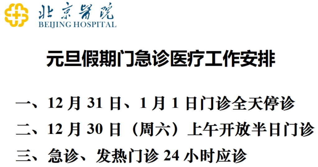 2024年元旦期间,北京同仁医院门急诊工作安排如下:
