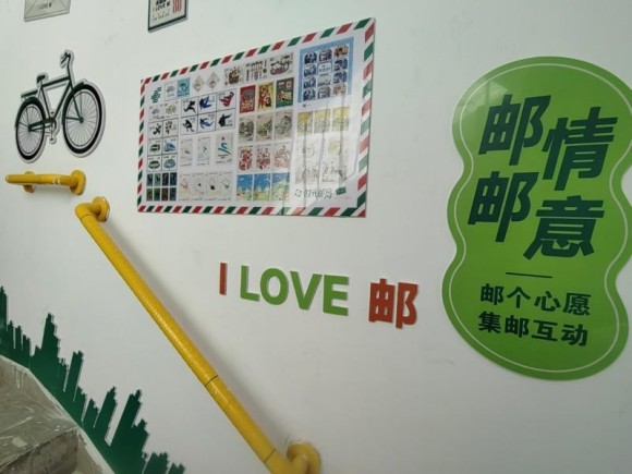 这栋邮局家属楼的公共空间如今被改造为集邮文化展示区和时光邮局记忆角,自行车、邮票、邮筒等鲜明邮政符号符号被搬进了单元楼,用墙面讲述着邮政发展史。“看着这些承载着前辈们共同记忆的邮政老物件随着时代的进步不断演化传承,绿色邮递自行车换成了现代先进的机动车,让我们对如今的邮政工作倍感自豪。”昌盛园社区共建单位城南邮政支局年轻职工薛锋、吉雅婷等人也参与到本次楼门改造行动中。如今,这个楼门不仅成为居民的文化驿站,更成了邻里交流的枢纽。