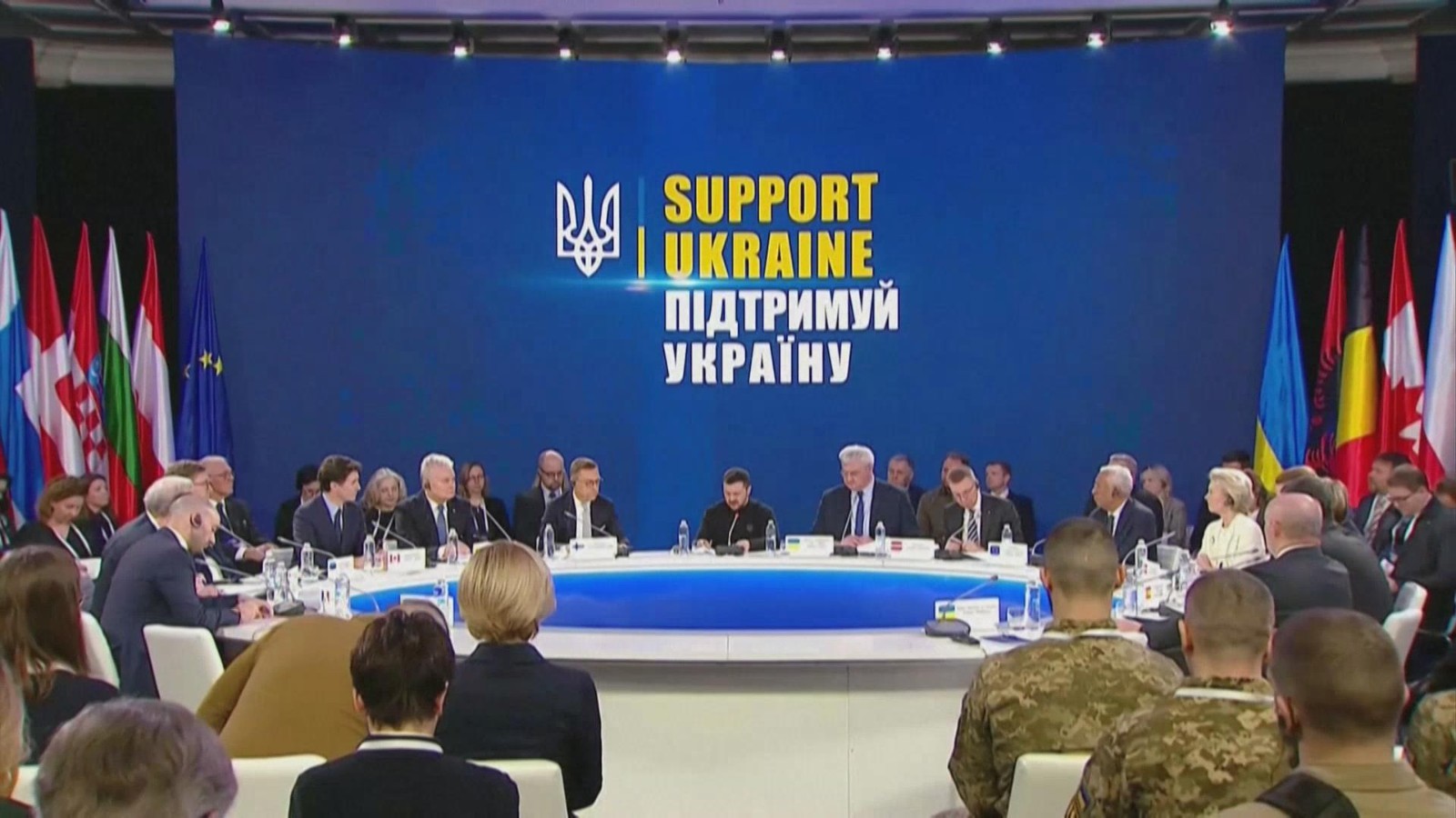 在乌克兰危机升级三年之际,泽连斯基24号在基辅主持召开“支持乌克兰”峰会,欧盟委员会主席冯德莱恩和欧洲理事会主席科斯塔率团出席会议,30多国领导人在线上或到场参会。会议主要讨论了对乌援助、对俄制裁、为乌克兰提供安全保障等议题。