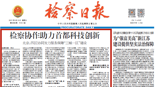 为推动服务保障科技创新向联动式、一体化升级迈进,牵头构建“三城一区”检察机关服务保障首都科创中心建设协作机制,与海淀区、昌平区、大兴区检察院共同开展服务保障国际科技创新中心建设座谈交流活动,签订《加强区域检察协作服务保障北京国际科技创新中心建设座谈会会议纪要》,建立集日常联络、业务协作、队伍共建为一体的跨区域检察协作机制,对知识产权等案件联合攻关业务难题,推动检察服务保障科技创新实现再升级,相关工作获《检察日报》头版头条报道。