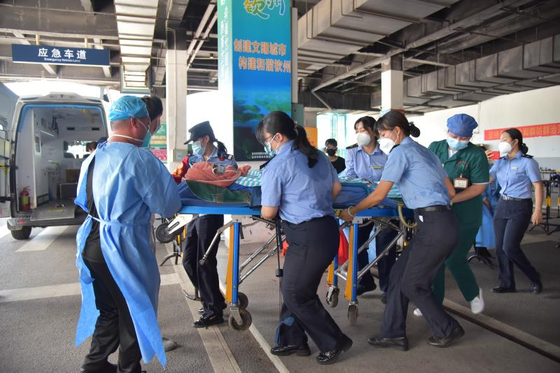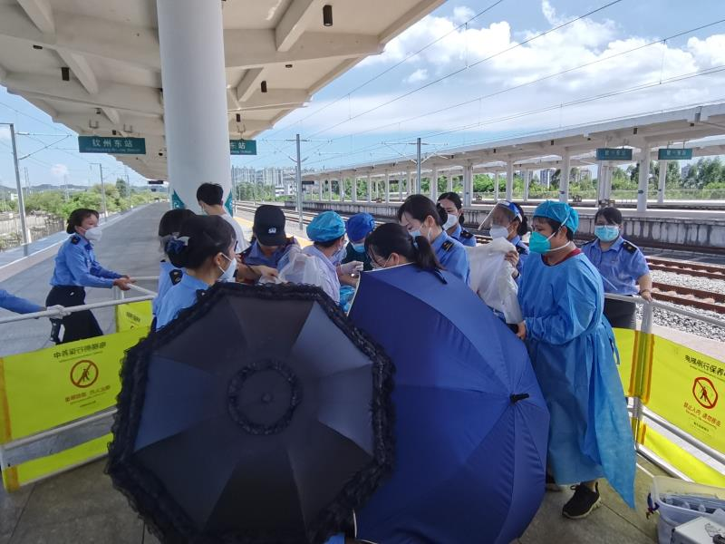 14时28分,列车抵达钦州东站,孕妇缓缓从5号车厢走出,她的丈夫抱着1岁半的儿子陪在身边。因事发突然,120急救车还未赶到,此时孕妇羊水已经破了,汗珠顺着脸颊不停地往下淌。