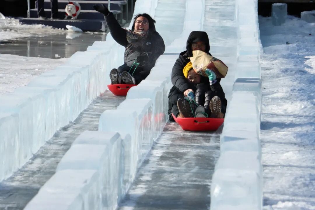 值得一提的是,除核心体验项目外,景区还在忘忧湖冰面设置了围炉煮茶体验区,让游客在冰天雪地中围坐取暖、品茶聊天,感受惬意休闲时光。同时提供冰车、狗拉爬犁、无动力雪圈等传统冰上娱乐项目,满足不同游客的休闲需求。与此同时,景区每日会严格开展冰面安全监测以及设施维护工作,确保游客能够安心畅玩。