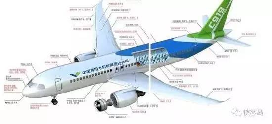 C919的航电系统、飞控系统、空气管理系统等是由美国通用、柯林斯、霍尼韦尔等国外知名供应商与中方企业合作生产,而机身、机翼、尾翼等部分则已经完全国产。