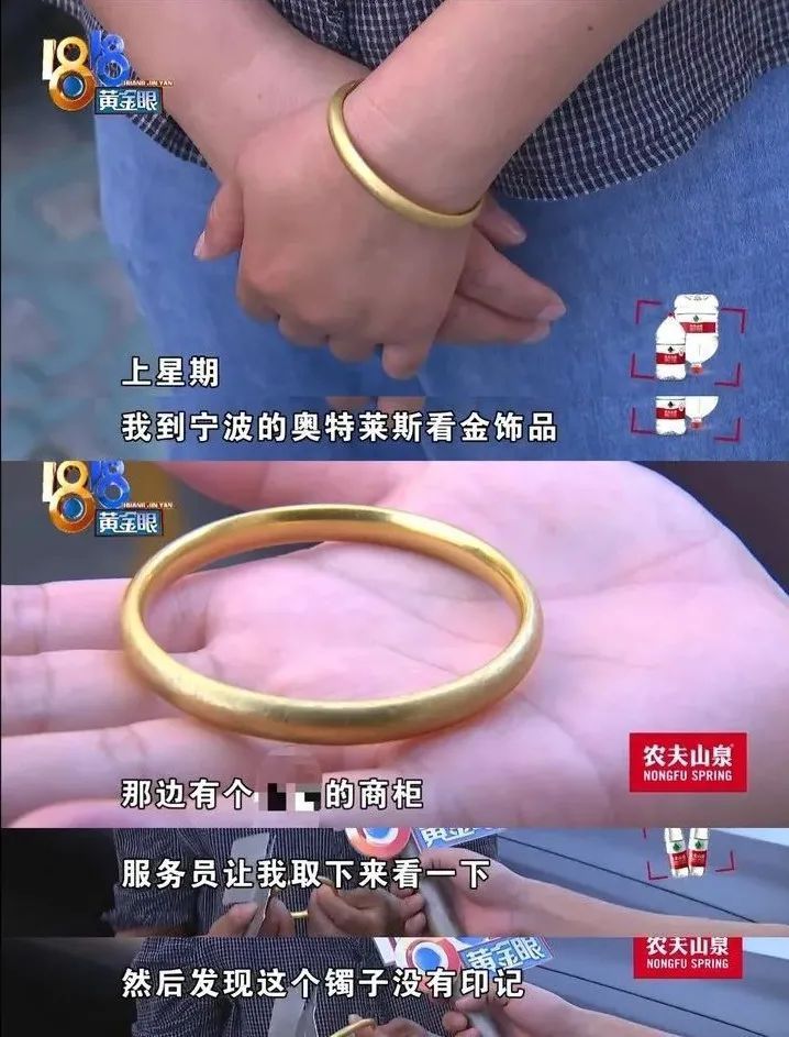 邵大姐在绍兴的某珠宝品牌专柜买了个金手镯。然后,她去宁波时也逛了该品牌的专柜,说起自己的手镯也是该品牌的。但是,宁波的柜员却告诉她,她的镯子少了一个应有的印记。这让她的心忽然吊了起来。