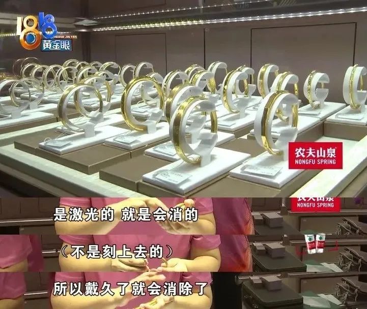 接下来,她和记者一起又来到该珠宝专柜,柜员给的解释是:这个手镯上的印记是激光打印,不是钢印,所以戴的时间久了就会消除了,手镯是正品没问题的。
