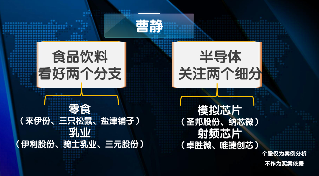 现场嘉宾曹静在消费和科技两个方向中分别有看好的细分领域: