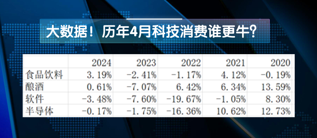 我们也梳理了一下具体的数据:过去五年的四月份,消费和科技主要板块涨跌幅表现: