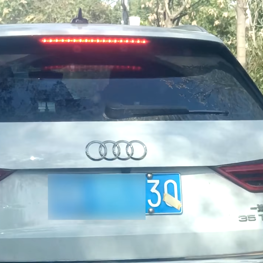 有网友反映,在左堤路,一辆白色小客车使用白色胶带遮挡住了号牌最后一位数字,导致号牌无法识别。驾驶人因实施故意遮挡机动车号牌的违法行为,被处以罚款200元,驾驶证记9分。