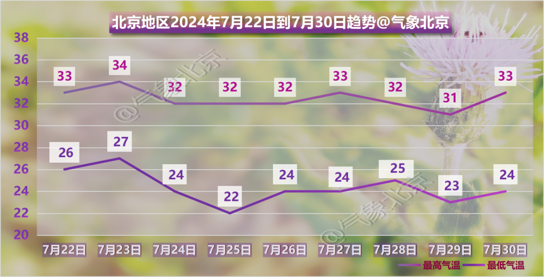 23 日白天:多云转阴;北转南风 2、3 级;平原地区最高气温34℃, 山区最高气温 32~34℃。