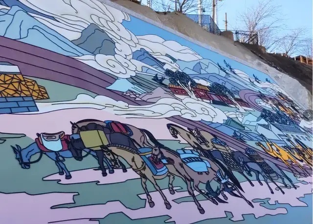 模式口地铁站附近上新!京西驼铃古道浮雕壁画——