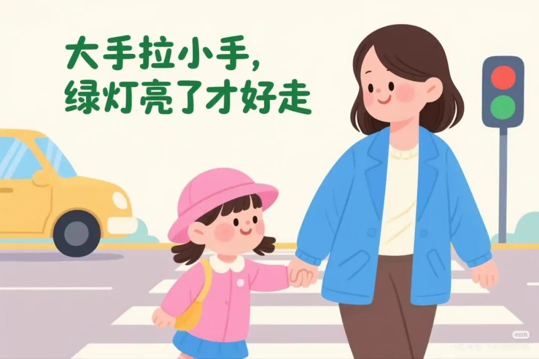 - 步行时:家长务必牢牢握住孩子手腕,避免其突然挣脱跑向马路,过马路要走斑马线,遵循“红灯停、绿灯行”原则,远离大型车辆及停车场等危险区域。