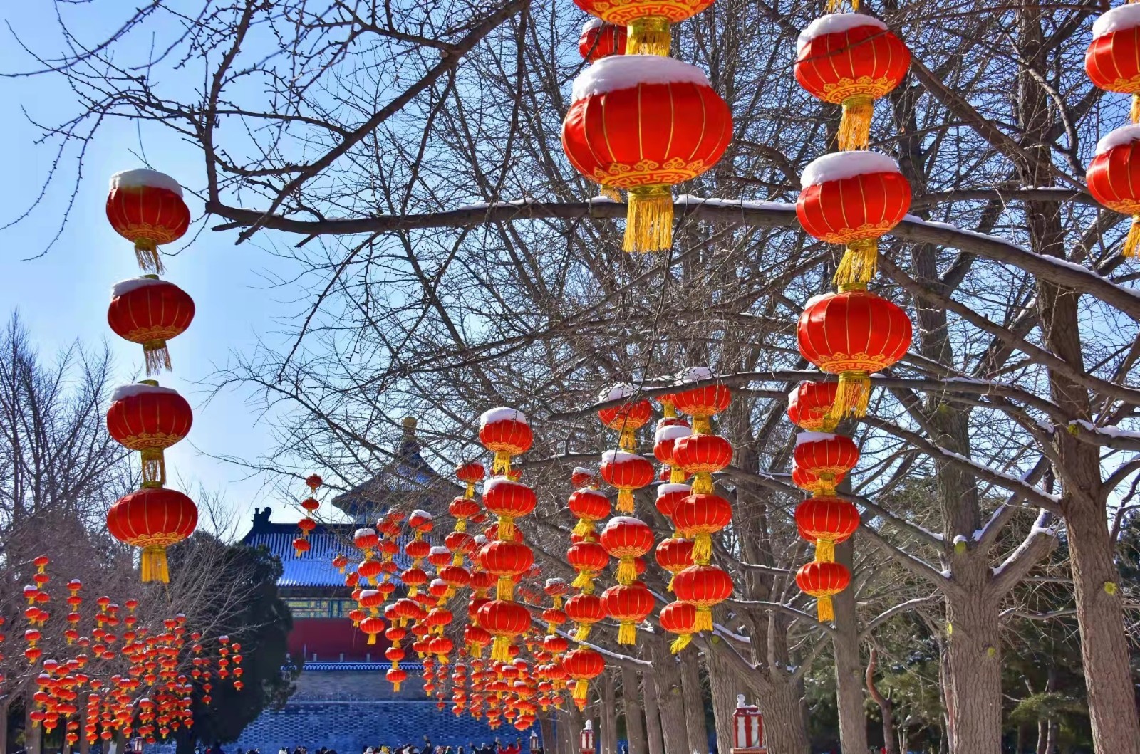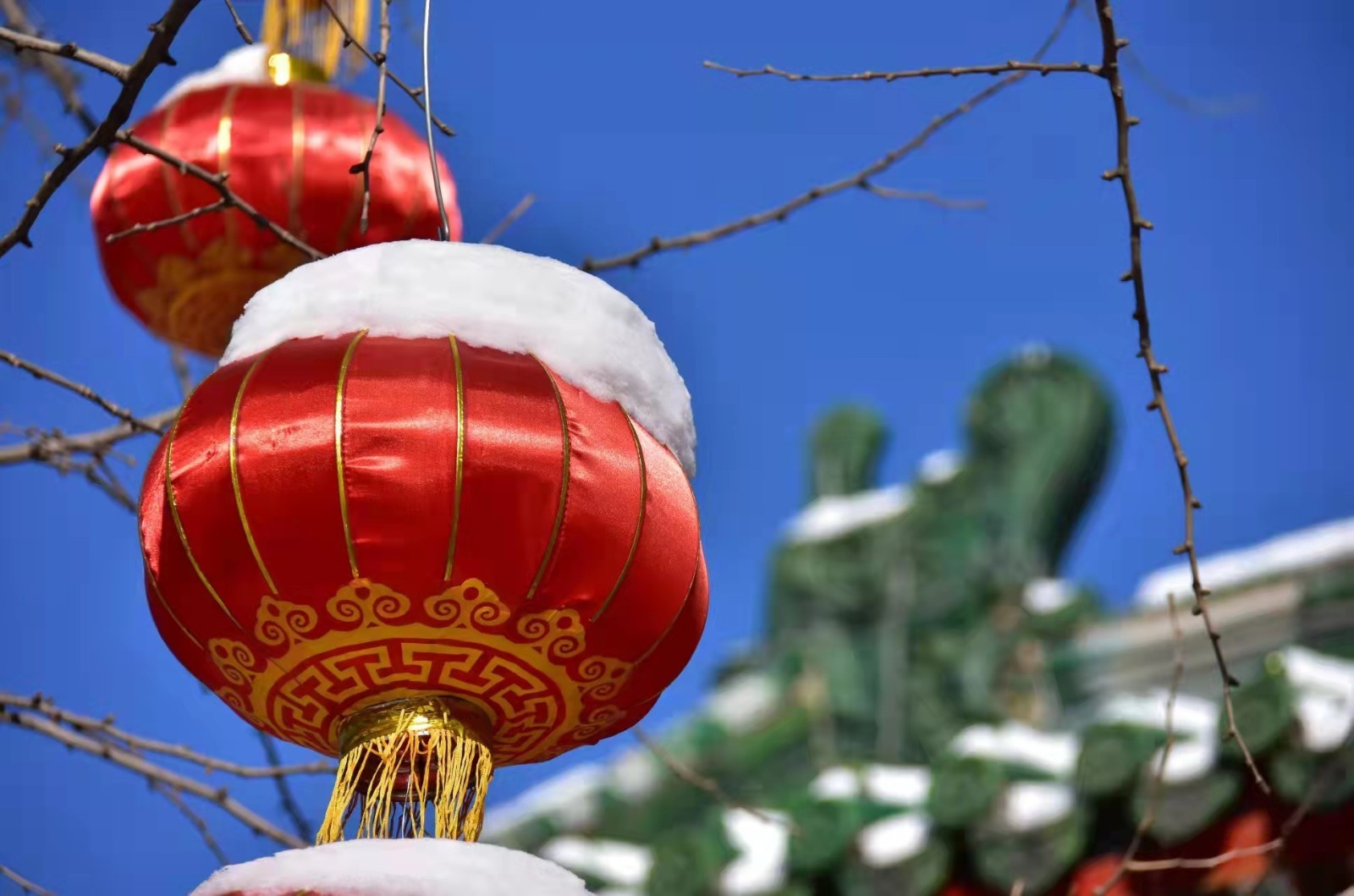 虎年初雪映京城,风景美如画~在道路两旁,红彤彤的灯笼在雪景的衬托下显得更为靓丽,每个灯笼上都会顶着白色的积雪,瞬间秒变成一串串雪容融,为北京城增添了一份别样的情趣。